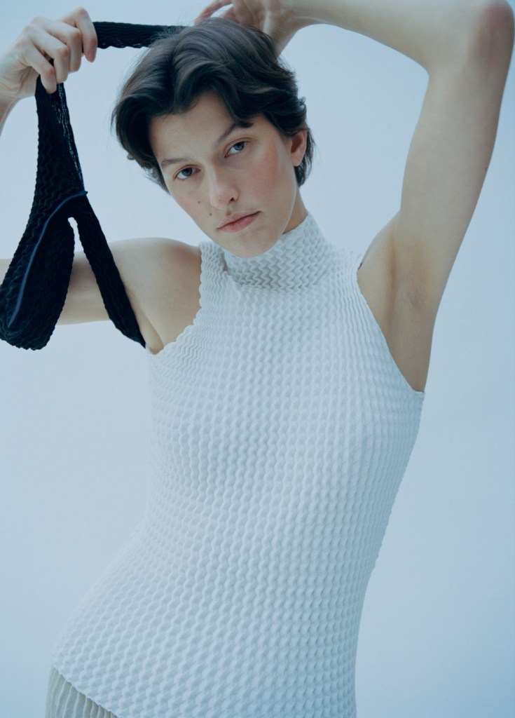 如同海底生物一般展現細緻紋理的《波浪綿柔》系列,有著三宅一生極高辨識度的縐褶特色,像海綿一樣伸縮有彈性,符合所有身型與尺寸,使用追求柔軟的棉和聚酯混紡,全新的紗線鼻針織結構打造合身不緊身的特別版型,以更高級的手法完美詮釋Free Size的終極樣貌。