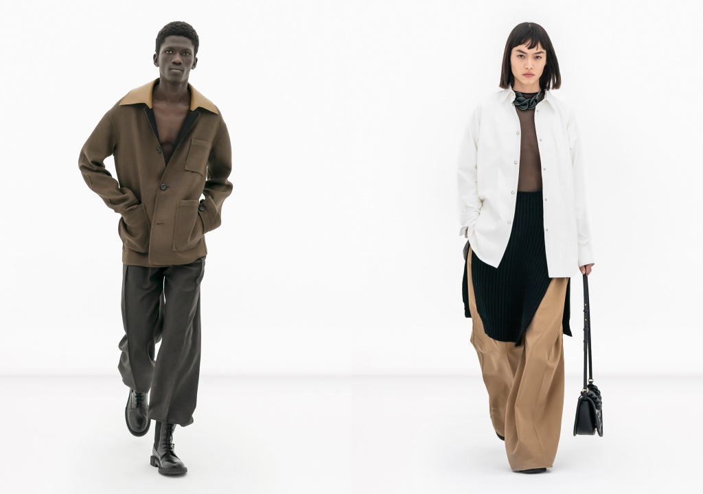 時裝系列重新詮釋休閒風格,以不羈格調、精湛技藝、多變廓形及男女皆宜的元素重塑。女裝單品以百搭的羊毛針織面料呈現引人注目的荷葉邊設計,別出心裁的方式詮釋了此晚禮服元素。毛羊皮餘料打造而成的柔軟條紋,為傳統晚禮服廓形演繹出新穎風采。針織緊身衣搭配人造皮革迷你裙,展現未來感俐落造型。長版風衣與腰帶搭配圍巾層次,打造出豐富的百變造型。