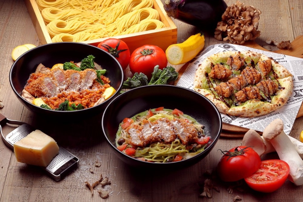 來自日本靜岡的BEPPIN PASTA首度聯名靜岡勝政日式豬排,把義大利麵、燉飯、披薩料理結合炸豬排,帶來更多元創意的和風洋食。有風味濃厚,吃得到軟嫩腰內豬排的「炸豬排青醬野菇義大利麵」、選以酸甜番茄為基底的「炸豬排番茄野菜燉飯」,及一點都不惡搞,吃起來飽足感十足,品嚐得到豬排專門店用心烹調的酥炸腰內豬排,搭配義大利巴薩米可醋增添清爽的「炸豬排起司青醬披薩」。