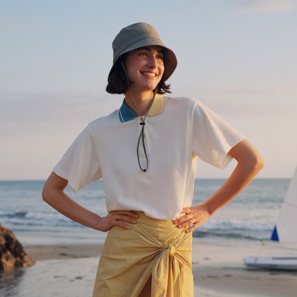 SS顏色以海洋藍、卡其色等大自然色調及亮眼紅與繽紛綠,搭配色塊設計與撞色滾邊營造出輕鬆的海濱風格。UNIQLO獨特的防水技術、網眼布料與其他機能材質確保實用性,主打以條紋製成的帆船刺繡圖案單品、在海洋與天空藍背景下相得益彰的扭結洋裝及夾克。