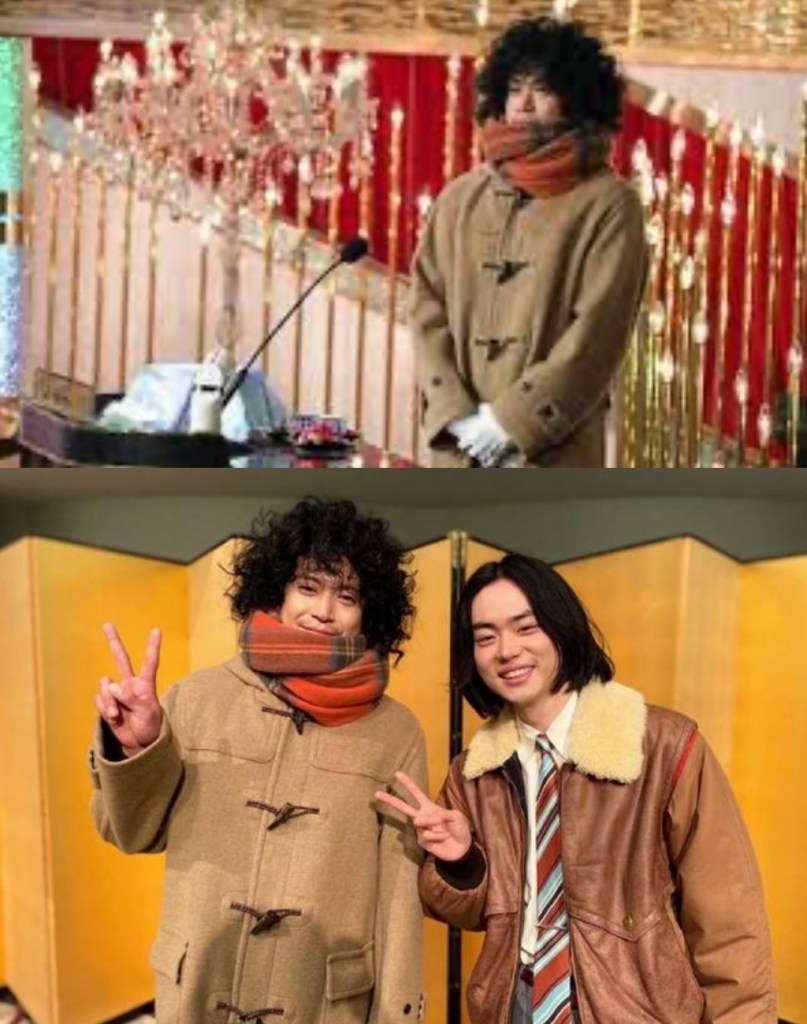 日前菅田將暉的好朋友、《銀魂》男星小栗旬更特別頂著爆炸頭,以圍巾大衣造型現身第45屆日本電影學院獎頒獎禮,上台時還偷偷用手機播放《勿說是推理》主題曲King Gnu的〈カメレオン〉,讓菅田將暉忍不住在台上笑場。