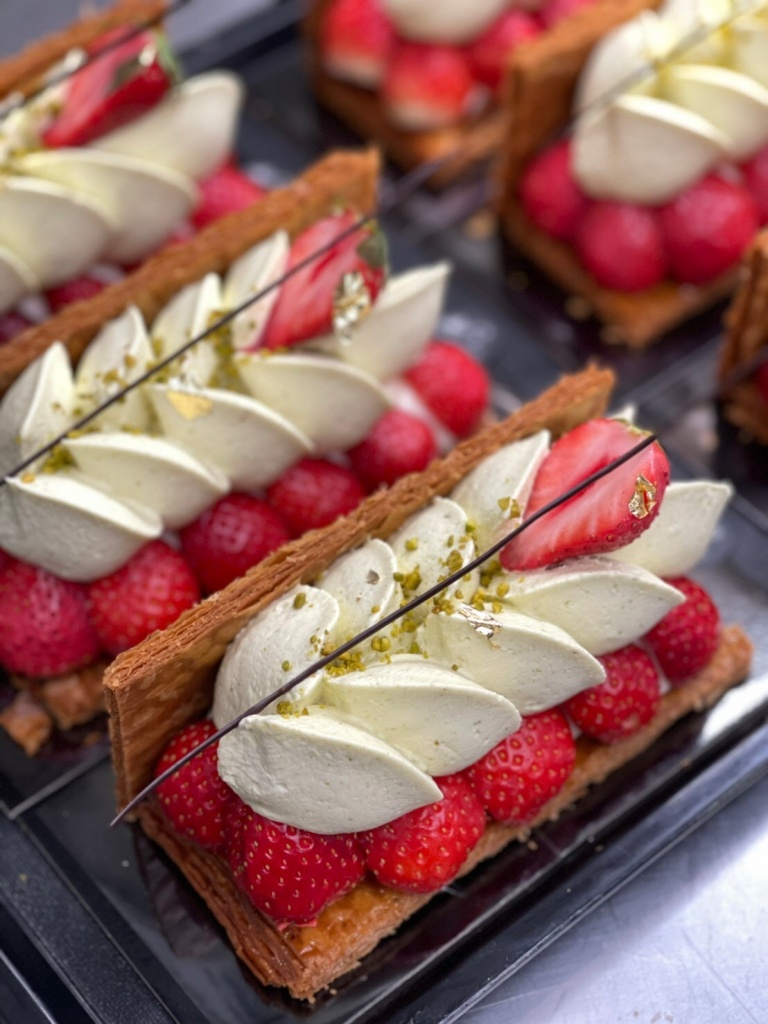 邊境法式點心坊「艾許千層系列」:邊境法式點心坊推出香草覆盆子、開心果覆盆子及純黑巧克力3款不同口味艾許千層系列,艾許奶油特製的千層派皮帶有淡雅悠長的奶香尾韻,將各種風味的千層派與酥鬆口感推升到極致奢華的享受。