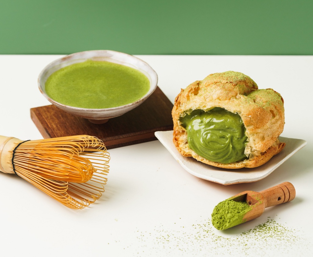 beard papa’s推出春季限定的一系列抹茶泡芙,採用日本老字號茶屋「伊藤久右衛門」抹茶粉,拌入招牌卡士達醬,苦甜交織的濃厚風味,是一款大人味的濃厚系甜點。除了抹茶內餡,外皮亦針對抹茶季推出使用招牌日式泡芙裹上比利時產70%巧克力的耶克泡芙,內餡可選擇抹茶或香草口味。