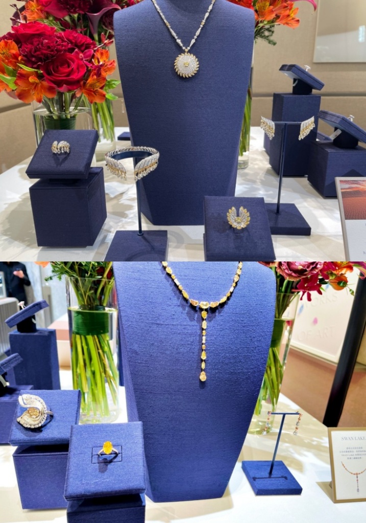 從最初發現它們的鑽石原石狀態,一直到切割與拋光階段,這些鑽石的起源與工藝歷程皆可被完整追溯。也帶來驚人的彩鑽陣容,精心臻選擁有珍稀罕見絢麗色調的彩鑽作品,包括極其珍稀的藍鑽、粉紅鑽與紫鑽等,每件作品的獨一無二色澤都與眾不同、令人著迷。