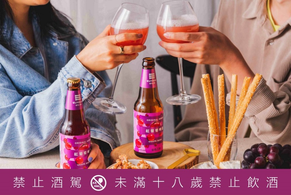 台灣在地精釀啤酒品牌SUNMAI金色三麥「紅葡萄啤酒」,一改傳統啤酒印象,以紅葡萄釀出超輕盈口感,讓啤酒呈現粉紅酒般夢幻色澤。細緻的碳酸氣泡釋放果實香氣,優雅美顏搭配無負擔的酒感,無論出遊野餐或是聚會佐餐,都是最佳美拍顏值擔當。