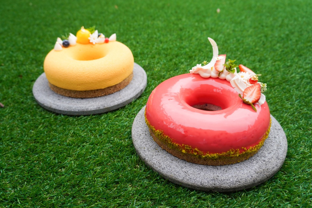 太魯閣晶英酒店推出兩款限量母親節蛋糕,皆以台灣原生穀物「油芒」為基底,讓原住民傳統食材華麗變身,蛋糕造型以黃色及紅色康乃馨為設計靈感,增添高雅的視覺效果。