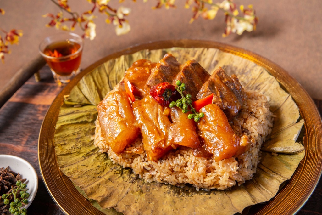 和牛控必嚐「冠軍犇牛粽」,豪華和牛以數種黃金比例香料爆香後加入和牛腮肉、牛筋,滷製得軟嫩可口,滷汁濃縮後拌入以和牛油花煉製的香濃和牛油、牛肉丁、蒸熟的長糯米飯,再鋪上滷製好的和牛腮及牛筋,肉香四溢口口過癮。