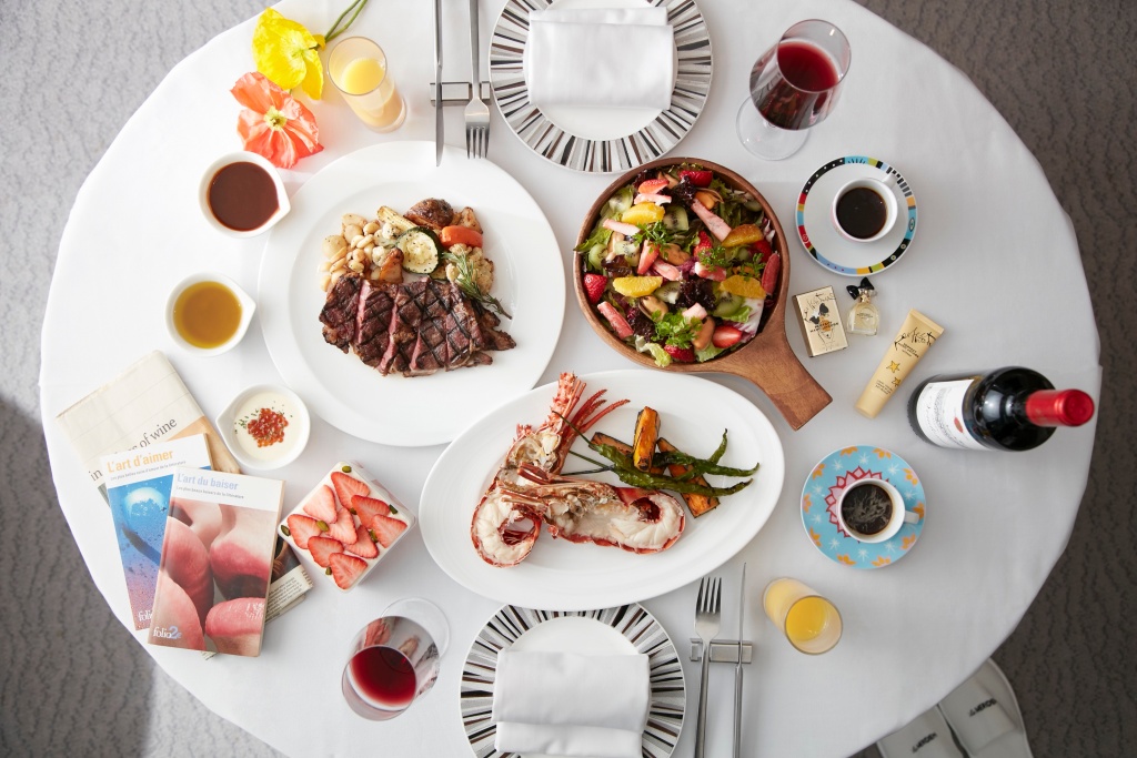 入住當晚還可於房內享用奢華海陸晚餐,包含開胃清爽的黃金蟹海鮮沙拉配覆盆子油醋汁沙拉及清蒸龍蝦佐蒜味鮭魚卵、爐烤美國肋眼牛排搭威士忌醬汁2道海陸美饌,佐餐搭配果汁、精選紅酒乙瓶及主廚精選甜點作為饗宴結尾。再送法國瑪恩Mathilde M.瑪麗安東妮絲柔香氛護手霜乙條、凡爾賽拜金女化妝包一只,讓媽咪好禮享不完。