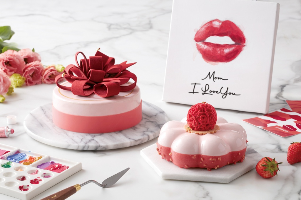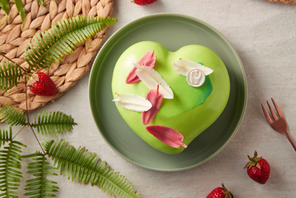 首波主打「莓顏綠鏡」草莓慕斯蛋糕,以輕盈軟綿的草莓香草慕斯,搭配手工熬製的草莓庫莉,下層是可可巴瑞脆片以及法國法芙娜70%巧克力製成的酥脆餅乾,最外層淋上嫩綠色的法芙娜鏡面巧克力,綴以粉白色的嘉麗寶紅寶石巧克力羽毛,層次分明的酸甜滋味,夏日微甜繽紛的色調,以味蕾邂逅一場海灘度假的快樂,媽咪的幸福笑容是最天然的美顏濾鏡,給媽媽最夢幻的假期時光。