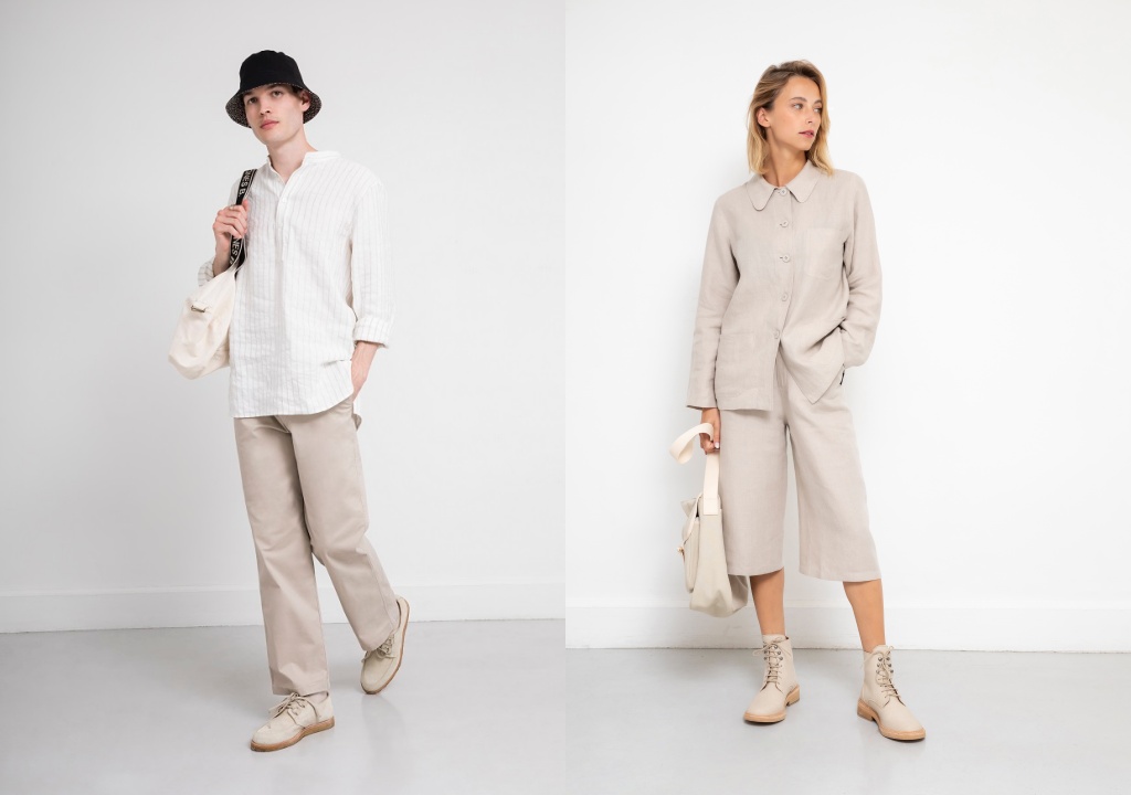 法國時裝品牌agnès b.清涼透氣的天然亞麻系列材質,為春夏衣櫃中對抗溽暑不可或缺的單品,材質舒適柔軟,不僅有著清爽與散熱的特點,在製程中更為省水,屬於高附加價值的綠色纖維,致力減少環境負擔,達到自然及環保的目標。