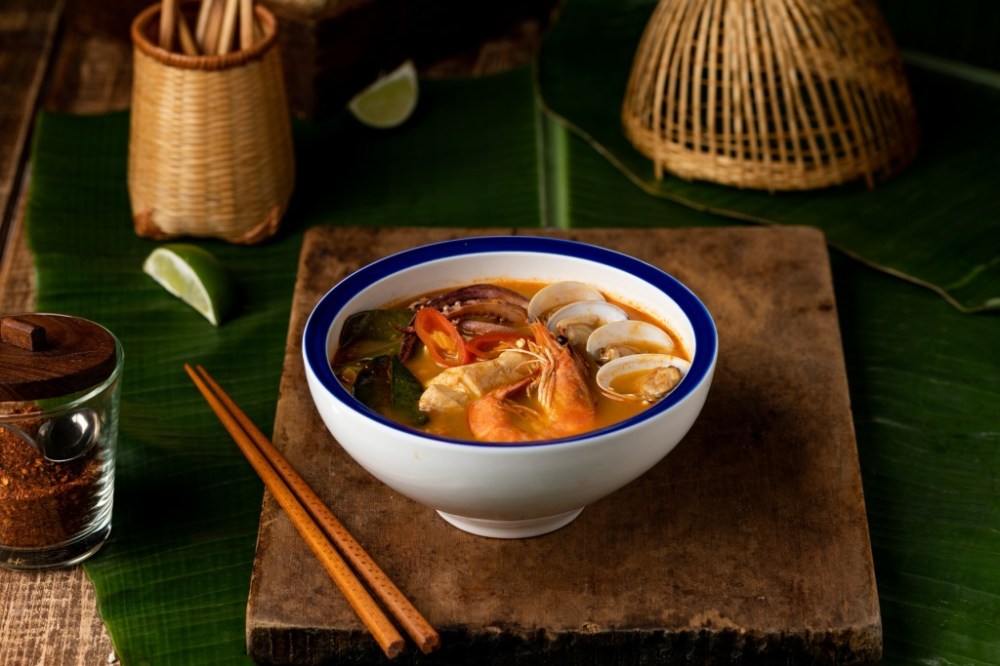 冬蔭功湯可說是代表泰國料理的招牌湯品,也是世界十大名湯之一,帕泰家的冬蔭功海鮮湯紅豔色澤中融合了酸、甜、辣3種滋味,加入鮮魚、魷魚、蛤蜊、蝦子等多樣海鮮,酸味鮮美極度開胃。
