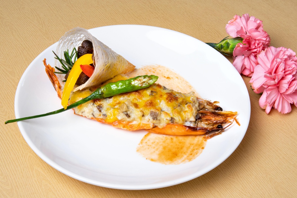 家宴中餐廳則為媽咪量身訂做的「養生美顏」桌菜,讓所有愛美的媽媽們一次食補到位。6人份的桌菜包含:稻香西施牛、蟲草養參雞湯等8道菜,10人份的桌菜包含:金銀蒜蒸龍蝦、三鮮燕玉海參煲、桃膠桂圓銀耳露等9道美味且滋補養顏的佳餚。