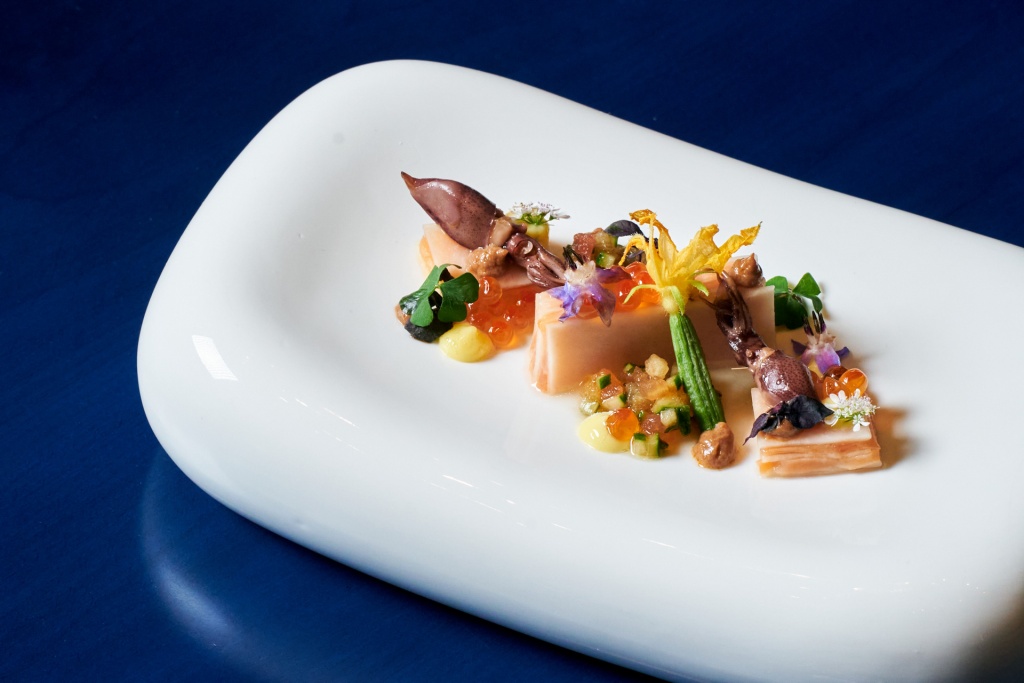 首波春季菜單以螢烏賊、日本生蠔、手捕扇貝、現流龍蝦、紐西蘭和羊及頂級菲力等豐美食材,詮釋大地餽贈的春日極致風雅。承襲著Fine Dining精緻餐飲原意,除了原有的人體五感饗宴,加上菜式「色、香、味、形、意」五感,其中「意」講究的唯美食器意境,在無隅這個無界限的食藝展演空間,延伸出美感層次,更為精彩動人。