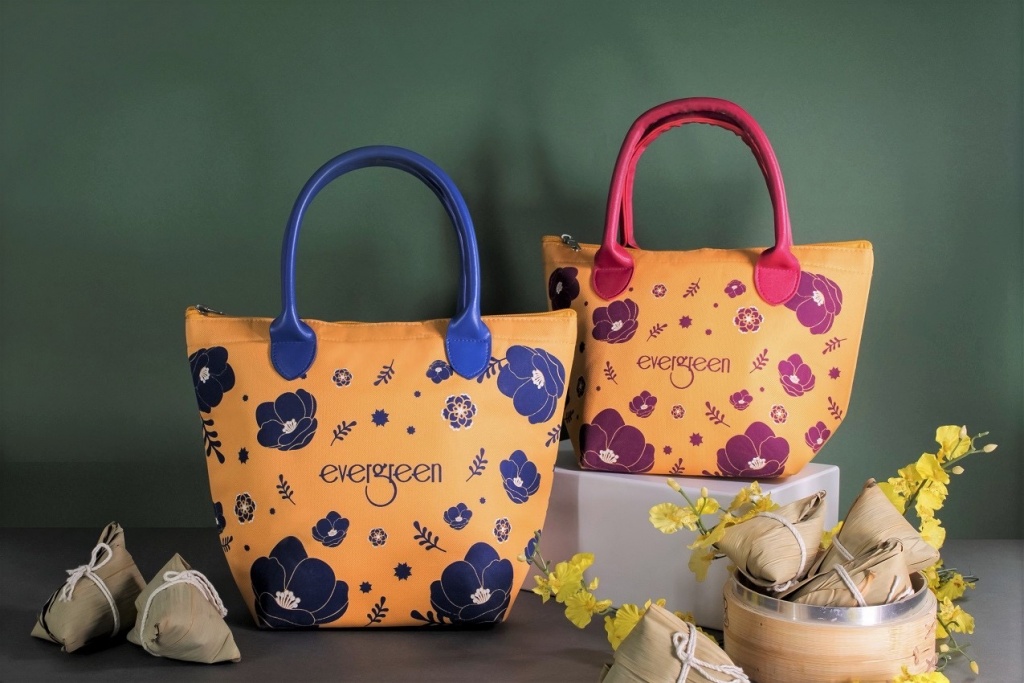 承襲綠色風潮Go Green,長榮桂冠酒店(台中)每年都會搭配可重複使用的保冷環保提袋,今年大膽使用愛馬仕橘的牛津布為底色,呈現強烈的撞色感,推出深海藍及勃根地酒紅兩款不同尺寸限量款,用青春洋溢的小花強化提袋視覺上的活潑感。