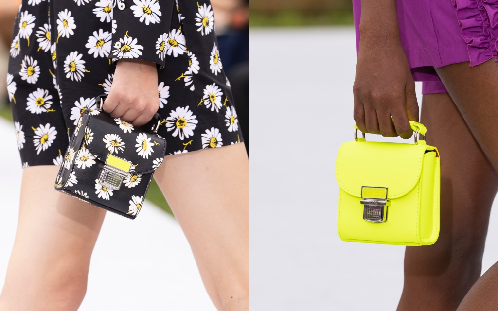 壓釦由雷射金屬製成,上頭配有霓虹綠的反光設計,顯露出創意總監Massimo Giorgetti對工業風格的熱愛,更與包款的女性化造型與明亮色調相得益彰。