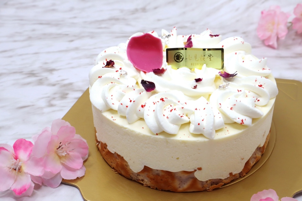 大正浪漫物語—蜜桃優格巴斯克乳酪蛋糕:日系質感甜點專賣店七見櫻堂首推出蜜桃優格巴斯克乳酪蛋糕,使用法國愛樂薇乳脂起士製作風味醇厚的覆盆子巴斯克,承載蜜桃優格與蜜桃草莓晶凍夾層,再以口感輕盈不膩口的優格風味愛樂薇奶油香緹。與荷蘭進口Dobla玫瑰花瓣巧克力點綴,藉精選食材演繹大正時代日本街頭翩翩起舞的少女裙擺,喚起每個媽媽心中潛藏已久的少女心。