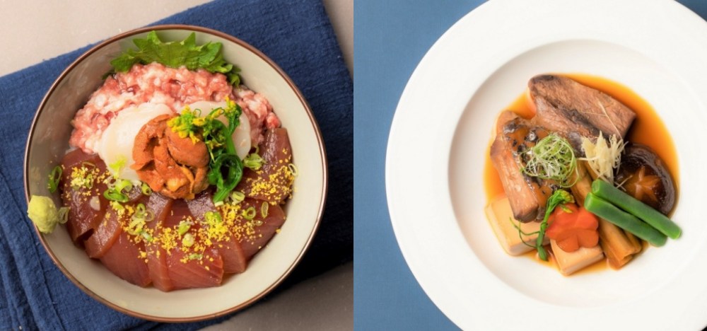 「特製鐵火丼」使用入口即化的鮪魚三角腹肉切片及刺身剁碎,加上鮮貝與海膽的組合,每口都是海洋的鮮甜滋味。「焚煮鮪魚尾肉」以運動量最大的鮪魚尾巴,含豐富的膠原蛋白,透過以醬油、味醂、清酒與蔬菜等日式紅燒烹調方式,文火慢煮徹底釋放膠質,完成鹹甜平衡的獨特口感。