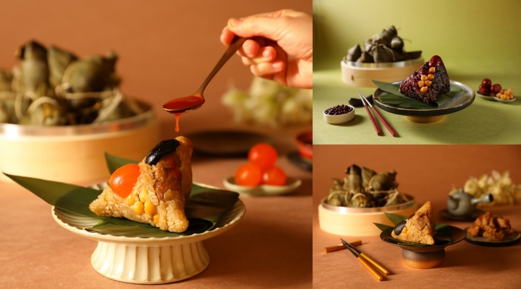 櫻花蝦鮮肉粽符合大眾口味,以大火快速拌炒酥脆櫻花蝦及Q軟滷肉,鹹香四溢。獅子頭鮮素粽,以養生聖品雪蓮子、頂級素紅燒獅子頭、埔里香菇入餡,健康低油少鹽,鮮甜養身。