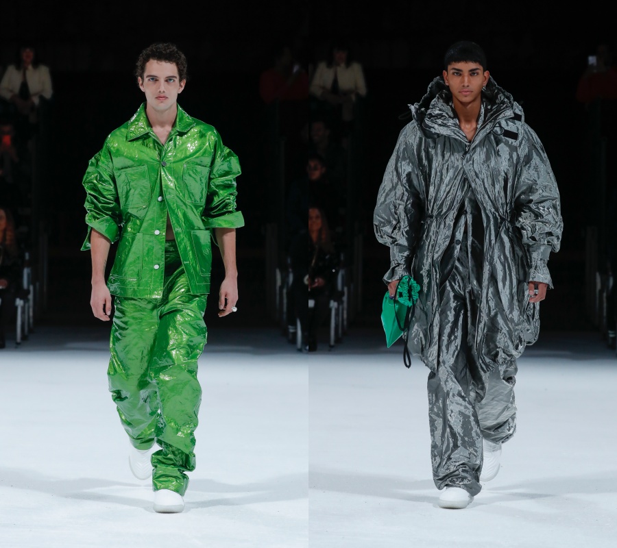 讚頌底特律工業科技及創新的靈感背景,本季大量使用強烈金屬質感的紗線、材質與配飾,不論是男女服裝或是包款配件,誇張極具分量的輪廓成為畫龍點睛的焦點,重新詮釋洗鍊成熟的Bottega Veneta意象。