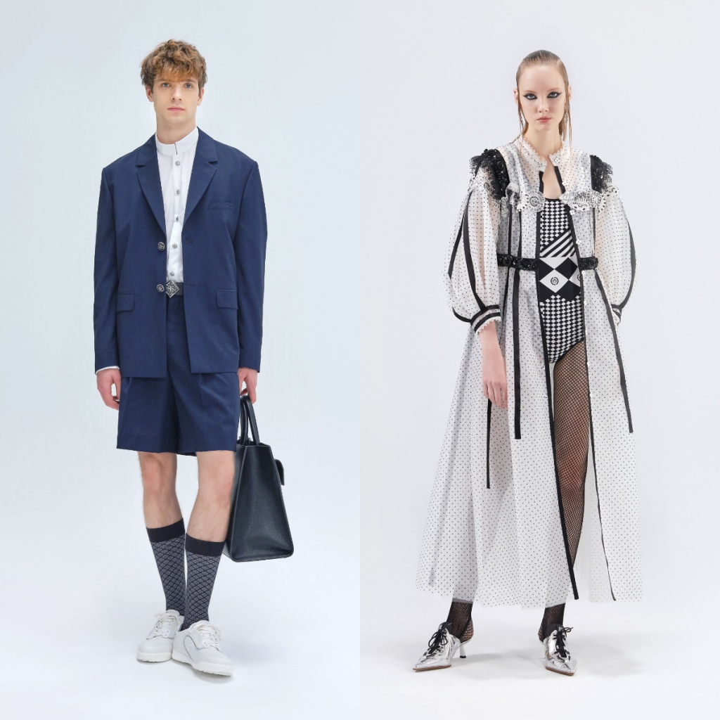 夏姿.陳SHIATZY CHEN擅長融合中西文化,運用東方服裝工藝精華帶入西方剪裁輪廓,情侶穿搭配合更顯低調奢華的東方底蘊。