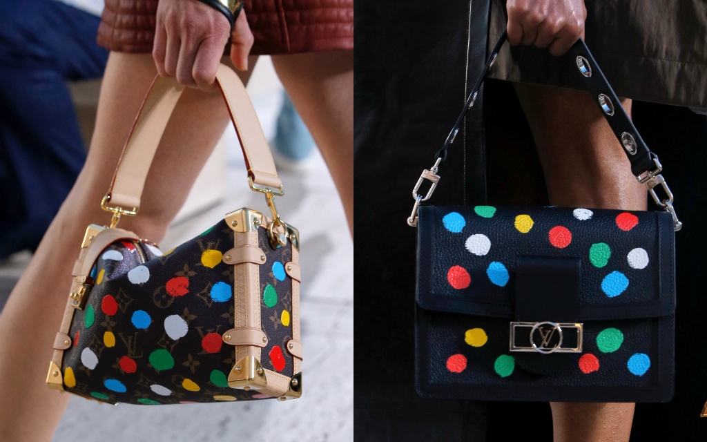 為慶祝LV與藝術家草間彌生再度攜手合作,並紀念首次合作10週年,路易威登女裝藝術總監Nicolas Ghesquière在聖地牙哥索爾克研究所舉行的2023早春女裝系列時裝秀,少量使用彩色圓點設計的皮件作品首先登場。