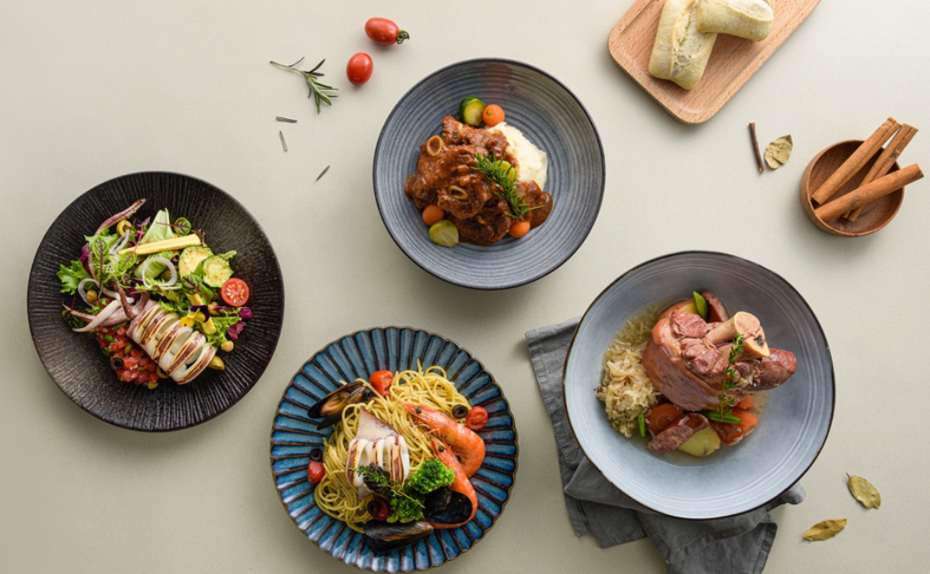 和逸飯店.台南西門館Cozzi KITCHÉN餐廳特別推出紅酒燉羊膝,附法國麵包、阿爾薩斯白酒酸菜燉豬腳、松露海鮮義大利麵等眾多午餐美饌。想要吃得輕盈可以選擇輕食特選系列的蒙特婁燻雞胸起司可頌三明治、BBQ豬里肌起司可頌三明治、南瓜奶油濃湯富府城蝦餅。為喜愛甜食的台南市民推出「手作布朗尼佐香草冰淇淋」、「繽紛水果冰淇淋鬆餅」下午茶美饌,與親朋好友安排一場下午茶偷閒時光。