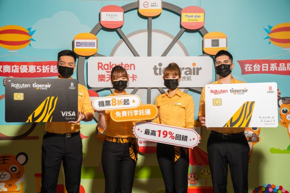 全新發行的樂虎卡提供台灣虎航購票全年3%回饋,加碼活動樂虎卡友日與台灣虎航VIP封館日優惠,兩人免費託運行李,更可無限次免費使用日本9大機場配合機場休息室。而持卡人持樂虎卡與台灣虎航登機證即可兌換樂天桃猿棒球隊球票一張,同行者憑登機證再享現場購票免加價。