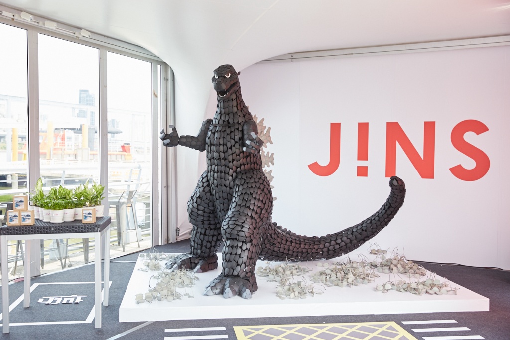日本銷量第一眼鏡品牌JINS發起的再生企劃「廢鏡新思」,自1月回收廢棄眼鏡階段,就獲得民眾積極響應,共計回收逾1.6萬支眼鏡,再透過生態創作藝術家李翊楷巧思,打造出世界首座以廢棄眼鏡為製作素材的哥吉拉Godzilla:。