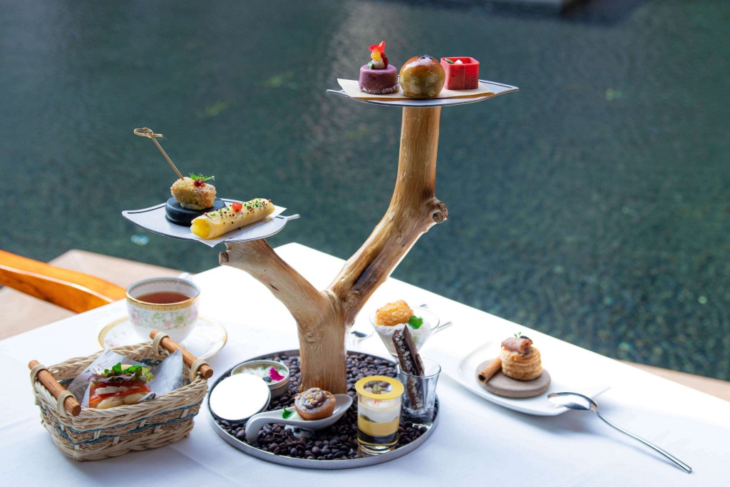 若想與另一半、好友獨享泡湯時光與美食,可選擇湯屋搭配下午茶專案,使用獨立湯屋90分鐘,再到波光粼粼的水岸茶屋空間品味雙人法式下午茶,品嘗超過十款創意鹹甜小點,搭配高山茗茶,度過悠閒的歡聚時光。