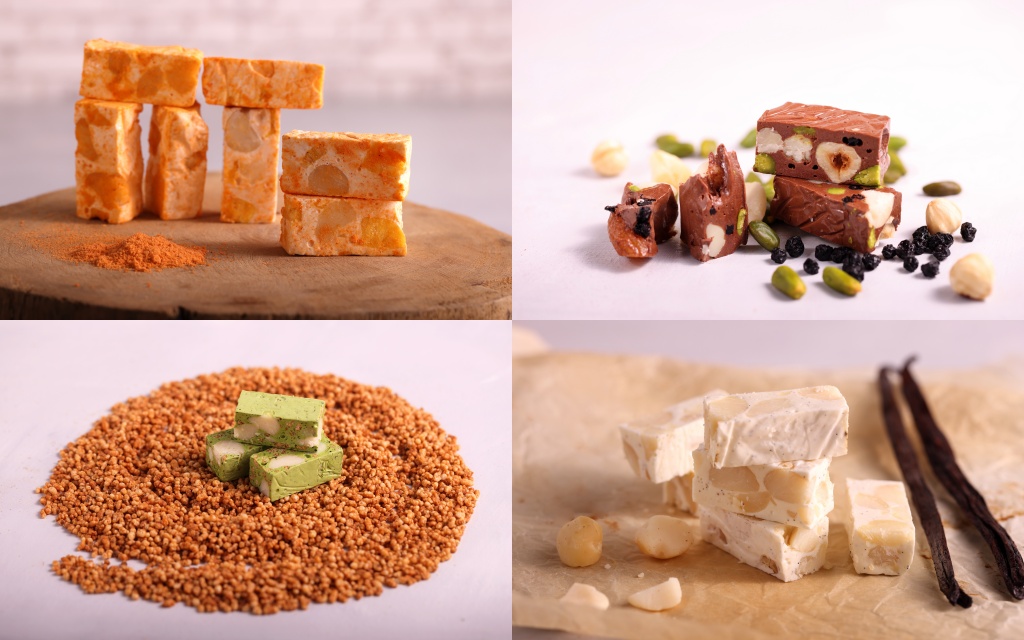 Amber的牛軋糖融合法式甜點的講究,風味搭配突出。嚴選法國AOP認證伊思尼發酵奶油、鹽之花,馬達加斯加香草莢、優質夏威夷豆、開心果等用料製作,甜而不膩、Q而不硬的糖體更是引以為傲的特色。