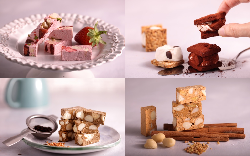 讓人驚豔的還有「焦糖榛果肉桂夏威夷豆牛軋糖」,軟Q糖體中除了混合焦糖與自製榛果醬增添風味,還加入野生清華肉桂粉、水潤蘋果乾與蕎麥粒添香氣與口感層次,顛覆了牛軋糖甜美刻板印象的溫和辛香,是肉桂控必吃的獨家口味。