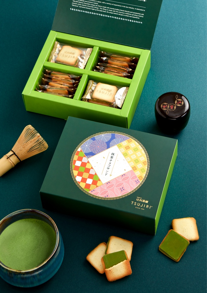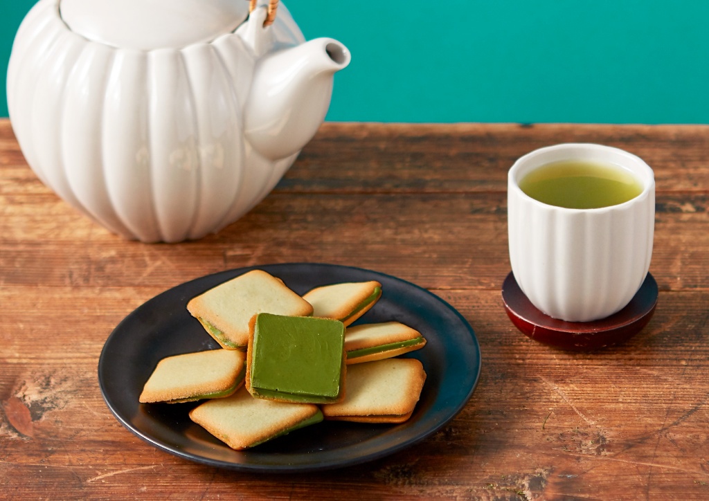 茶食為全新開發的「辻利抹茶夾心薄燒」,香濃奶油與乳酪製成酥脆口感的法式薄餅,夾以濃郁抹茶白巧片,使用珍貴石臼研磨抹茶粉「丸倉」製成,再以些許法國白蘭地提味,增添獨特感受,甜而不膩,令人愛不釋口。