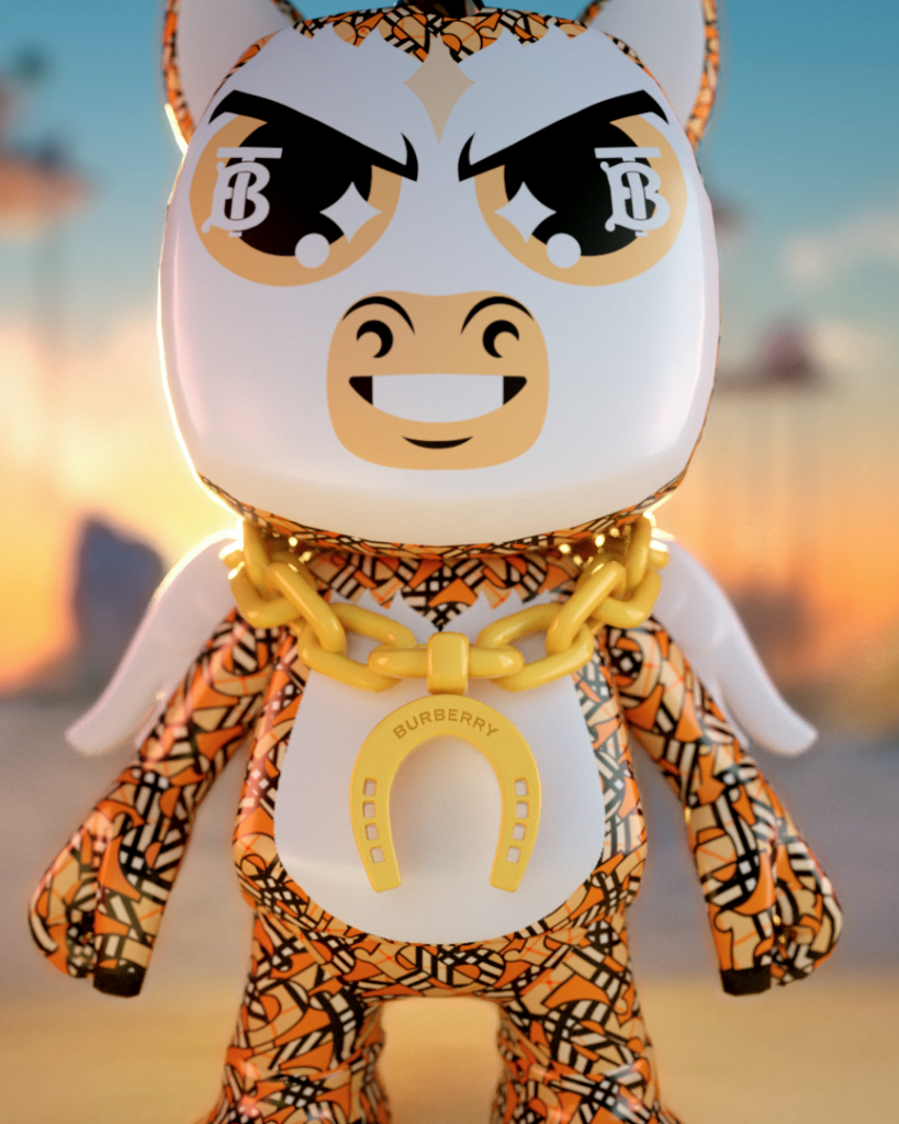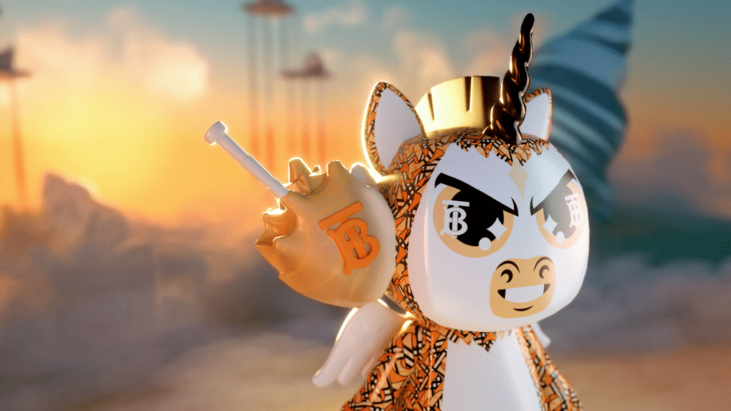 限量版「BURBERRY BLANKO NFT」自品牌的動物王國(Animal Kingdom)設計汲取靈感,名字Minny B的獨角獸造型,身上飾以Burberry嶄新TB夏季花押字圖案。作為對此種神秘生物俏皮的詮釋。