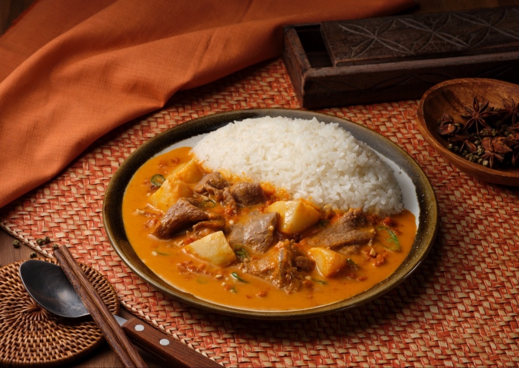 「泰式瑪莎曼牛肉咖哩飯」以「咖哩之王」瑪莎曼咖哩為延伸開發,獨門咖哩為基底,加入溫潤的洋蔥醬體進行提味,佐上鬆軟馬鈴薯塊及軟嫩牛肉片,口感濃郁溫醇,層次豐富。「泰式綠咖哩嫩雞燴麵」以超人氣泰國COCK青咖哩為基底,加入椰漿增添濃郁滑順口感,搭配醃漬嫩烤雞胸肉片及馬鈴薯塊,帶出正統泰式微辣微甜的風味。