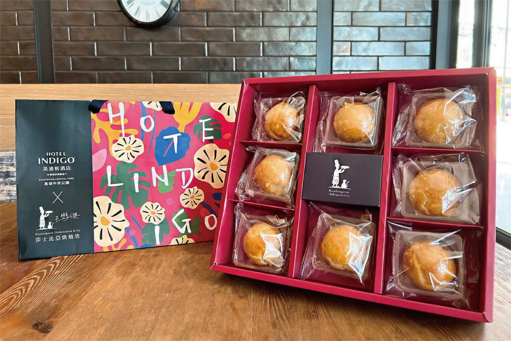 高雄英迪格今年中秋特別與世界麵包冠軍王鵬傑攜手合作,推出聯名限定「盈月流金」中秋禮盒,由王師傅親自為高雄英迪格獨家研製「菠蘿流心芋頭月餅」,口感香酥濃郁,不愛吃月餅的人也會瘋狂愛上。
