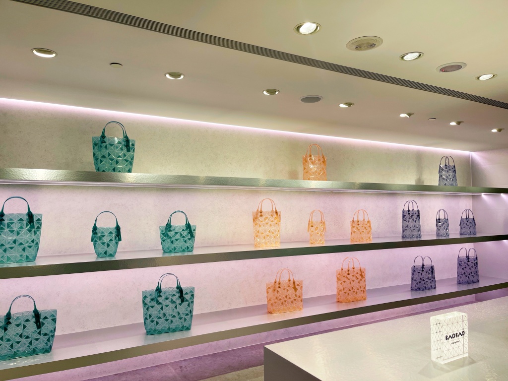 三宅一生經典包包BAO BAO三角片黏著在網布面料製成包款,悠遊於2D與3D幾何、軟萌與硬質之間,2022年全新推出「DAZZLE.稜鏡幾何」採取直接一體成型,透明涼感的塑料材質,拿起來更加輕盈,同樣可以任意折疊也不會變型。