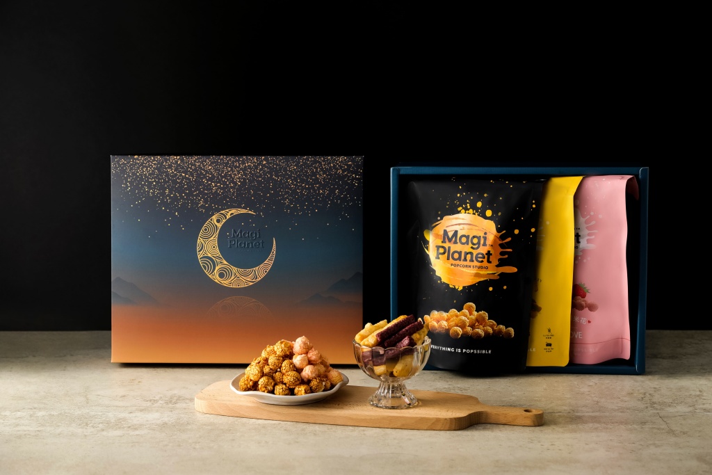 今年中秋節Magi Planet星球工坊特別推出「2022星彩晶漾中秋禮盒」,以上弦月倒映海平面的暮色,結合閃爍的星空點綴,霧面設計勾勒出秋季夜空的神秘感,呈現雅致品味。