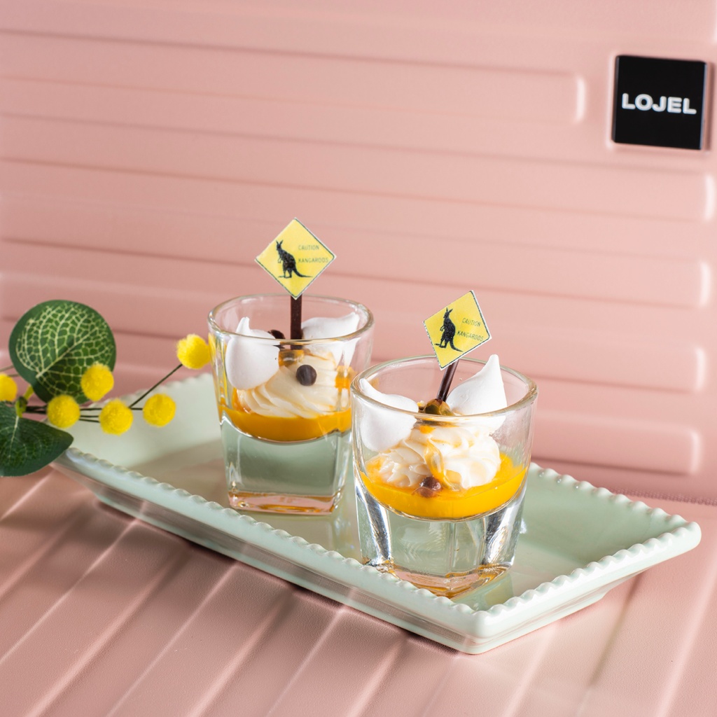 由德籍甜點主廚法蘭克(Frank Braun)精選食材,以各國經典甜鹹點為主題設計,從亞洲、中東、歐洲、美洲到澳洲,帶饕客用味蕾環遊世界,滿足想旅行的心,也特別呼應LOJEL CUBO行李箱的嫩粉風格,變化出多樣精緻甜點與鹹食。