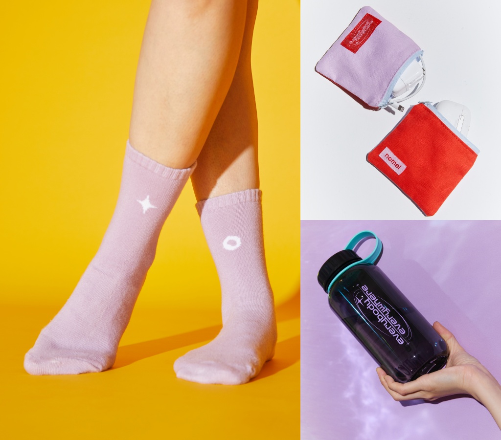 3周年對nomel來說意義非凡,特別推出「everybody everywhere」布標的拉鍊扁零錢包,丁香紫與白色的雙色中筒襪組,及尚未推出就引發高討論度的「everybody everywhere」運動水壺3樣滿額限量好禮。