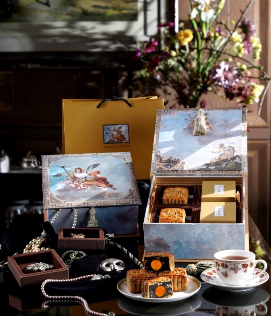 2022年君品酒店中秋節推出「君品翡冷翠寶盒」頂級中秋月餅禮盒,運用傳統廣式月餅製作技法,包含鳳梨南瓜子、棗泥蛋黃、伍仁金腿3種口味廣式月餅,搭配2盒梨山烏龍茶葉組合,雋永東西文化交會的美麗,打造跨越時空與文化的祝福。