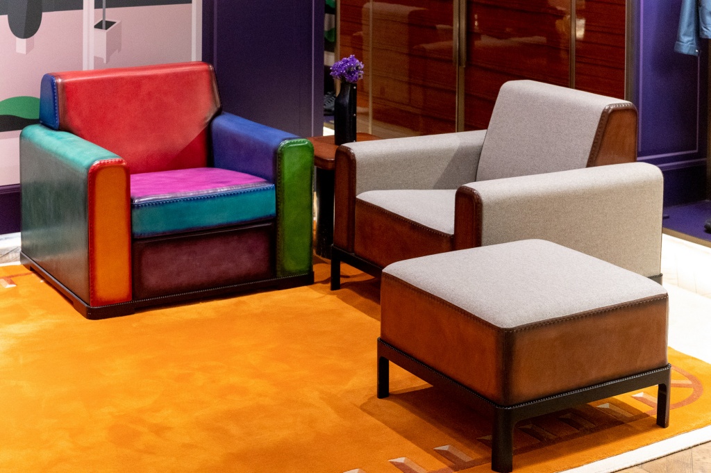 作為Berluti生活美學的一個重要部分,品牌自60年代開始鑽研傢居作品。當時Talbinio Berluti以創新手法設計俱樂部扶手椅,確保顧客的腳在試鞋過程中能擺放在最佳位置,並享受完美的舒適度。
