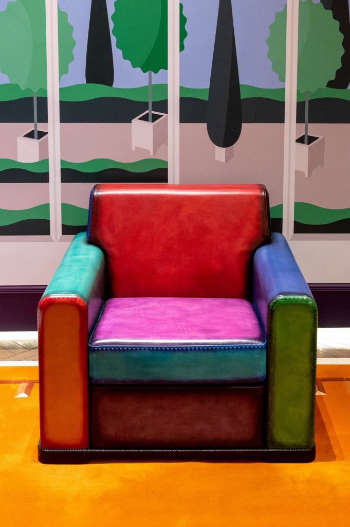 這個以Venezia皮革打造的扶手椅很快成為Berluti店舖的固定陳列,因深受喜愛而開始接受特別訂製。2015年開始,Berluti的傢俱與生活用品日益豐富,增添了桌子、足凳、梳化等產品,更延伸至桌上足球與撞球桌等遊戲用品。