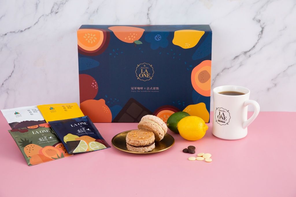 「LA ONE雙冠軍咖啡聯名禮盒」由世界冠軍咖啡師吳則霖與烘豆師賴昱權精選咖啡豆,結合LA ONE最自信法式點心費南雪、達克瓦茲,法式甜點與香醇咖啡完美搭配,咖啡掛耳包+費南雪或達克瓦茲,最適合親友聚會品味。