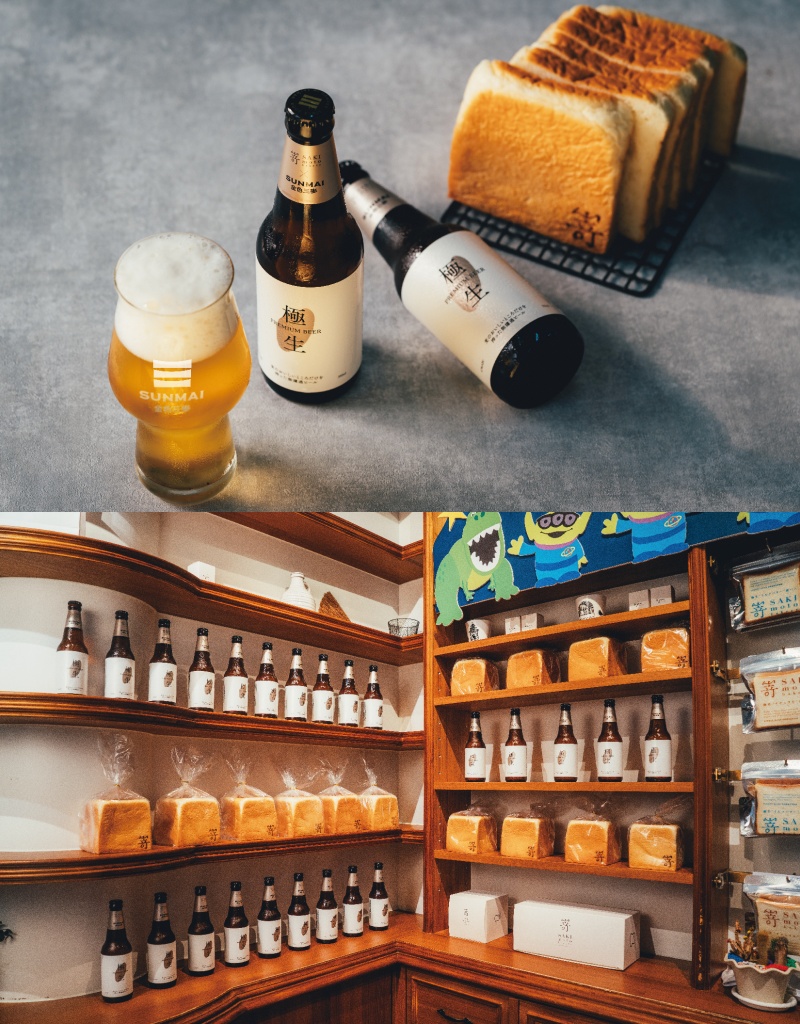 跨界攜手金色三麥集團聯名共創最消暑的液態生吐司「SUNMAI金色三麥極生啤酒」,靈感取自SAKImoto Bakery極生奶油牛奶生吐司,對應的生小麥啤酒以長時間低溫發酵製成,釋放飽滿鳳梨、香蕉等熟果香,泡沫綿密細滑,呈現小麥食材細膩的工藝面向,清爽具有果香的特質,夏天喝起來更輕盈清爽。