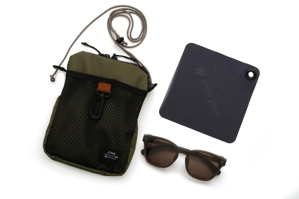 Snow Peak與JINS滿載設計巧思與高功能性的聯名墨鏡,全款式眼鏡皆附贈原創設計眼鏡袋與眼鏡布,專用眼鏡袋設計成輕便斜背包款式,使用Snow Peak帳篷布料與帳篷繩等實際使用的材料製成原創設計眼鏡袋,眼鏡布設計了扣圈可以掛在斜背包上,成套組合陪伴悠遊於各種戶外活動,對露營愛好者不但實用也值得收藏,強強聯手讓戶外活動變得更加有趣。