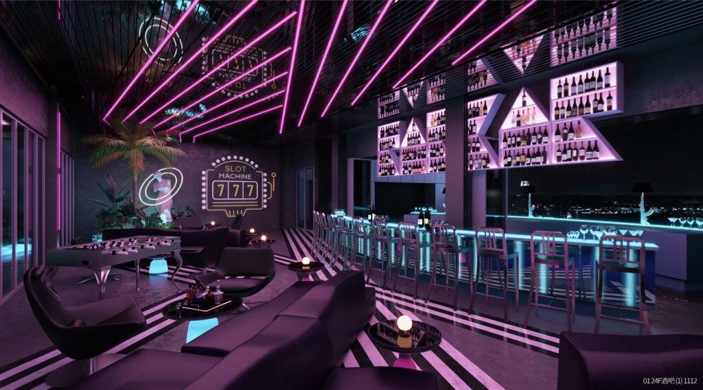 承億集團表示:「RAR為電腦解壓縮檔名,承億酒店拆解為Release、Alcohol、Relax,以風格調酒為平常高壓的都市生活解壓縮,搭配科幻迷離的Cyberpunk室內設計,RAR BAR將重新刻畫港都時尚潮流夜生活標竿。」