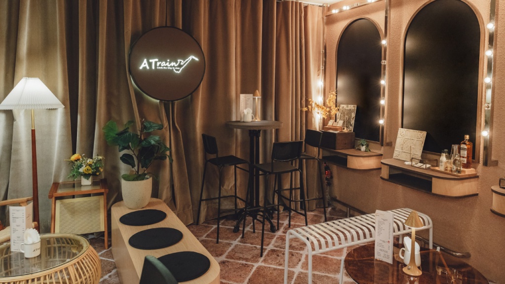 店內更設置A Train限定空間「微醺接待所」,提供VIP尊榮式的飲酒空間,在熙攘人潮的購物空間中提供另一個飲酒秘境。菜單編號從1~7的七種聯名調酒映照出對不同假期的想像,以不同的調酒交織專屬自己的微醺假期感,感受到微酸微甜滋味的假期幸福感,享受街頭飲酒的創新體驗與放鬆感。