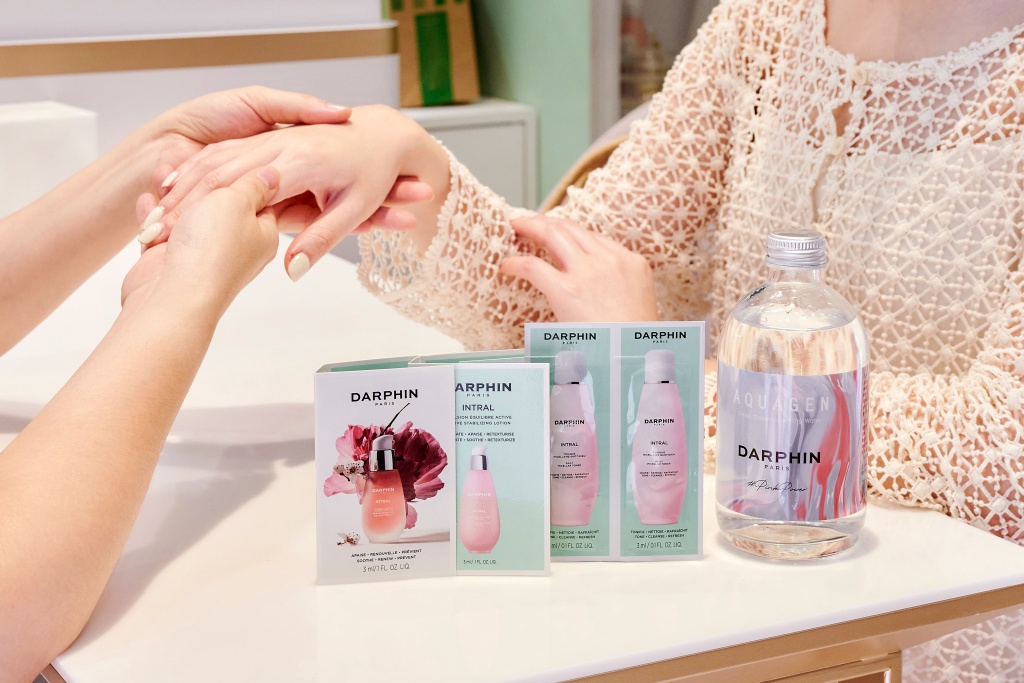 為了讓更多人可以,DARPHIN打造巨型療癒小粉紅裝置藝術,瓶口處更灑落滿滿的牡丹與粉紅岩玫瑰花朵,沈浸在療癒粉紅花海時,更展現了朵法對花植的重視與堅持。身旁的法式花車還原了巴黎實驗室,展示將花植成分結合60餘年高效科研技術,通過科學實證帶來的美麗保養傳奇,深入探索療癒小粉紅的美麗秘密。