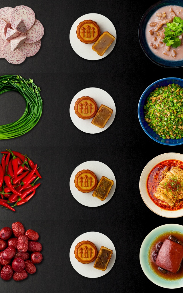 富錦樹台菜香檳創意口味首次出擊,精選店內人氣佳餚製成月餅鹹香內餡,吃得到富錦口水雞經典辣油的微微麻辣、芋泥嫩肩的綿滑芋頭、蜜棗煨肉的甘甜蜜棗與五花肉,及松花蒼蠅頭中豆豉的鹹與皮蛋的香,禮盒完美重現富錦樹台菜香檳用心料理的精華美饌。禮盒採用粉、橘、黃色塊的交錯設計,延續富錦樹一貫的俐落風格,為中秋佳節增添時尚與美味。