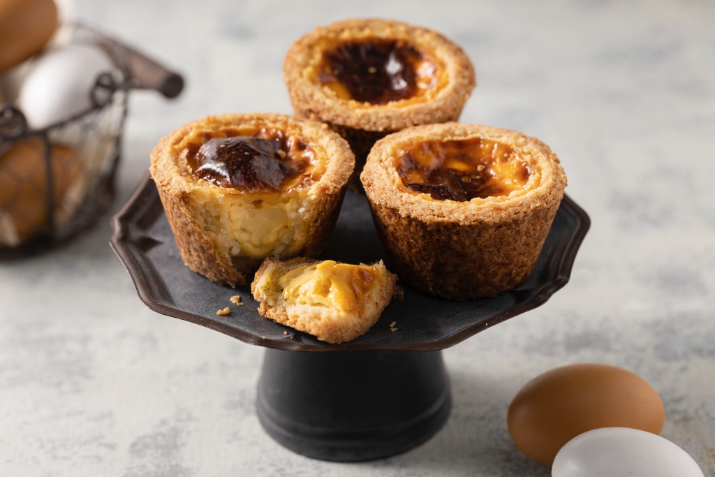 老皮嫩肉是升級版法式布蕾塔,餅皮採近似酥波蘿口感,搭配以大量香草籽、日本牛奶、葉黃素雞蛋等調配成的蛋液內餡,布蕾餡嫩滑,才是後媽家老皮嫩肉精隨。餅皮一咬酥化不硬,軟滑嫩的布蕾內餡入口即化,塔皮與內餡的酥香軟滑,名符其實的老皮嫩肉,可冷凍食用,口感近似冰淇淋。